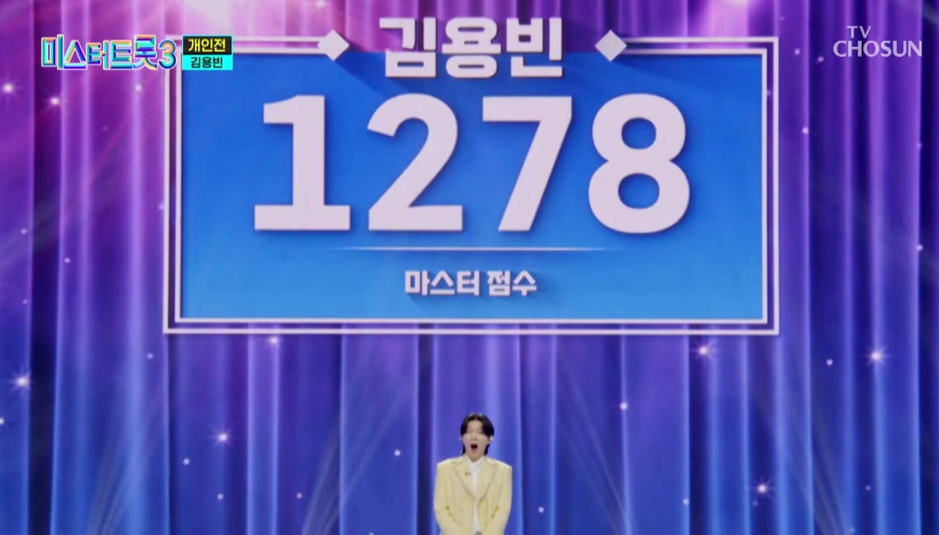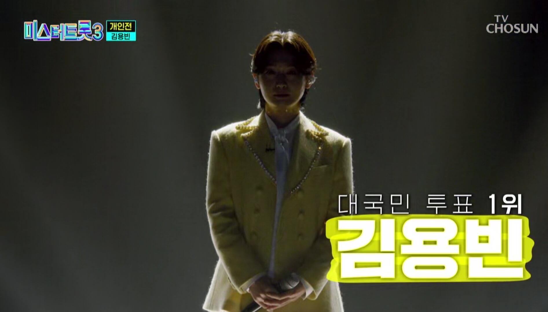 준결승전 1라운드 무대에서 온라인 응원투표 점수로 순위 반등에 성공한 김용빈은 현철의 앉으나 서나 당신 생각을 선곡하여 마스터 점수 1278점, 관객점수 168점, 총 1446점으로 춘길과 공동 2위를 차지했습니다.