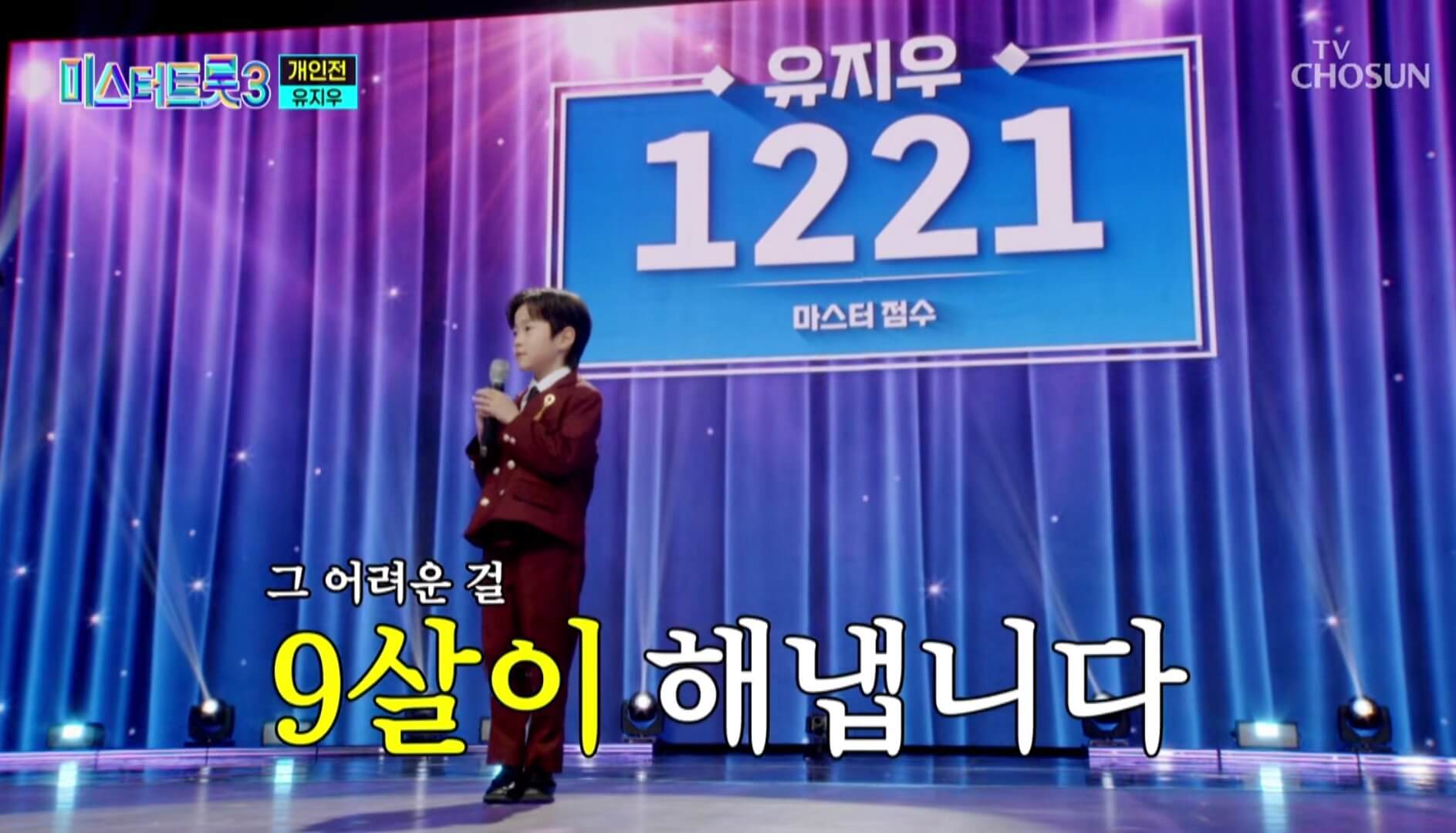 고작 9살밖에 되지 않은 막내 유지우는 조항조의 돌릴 수 없는 세월을 선곡했고, 마스터 점수 1221점, 관객점수 154점, 총 1375점을 받아 8위를 차지하면서 당당하게 준결승전 2차 무대에 오르게 되었습니다.