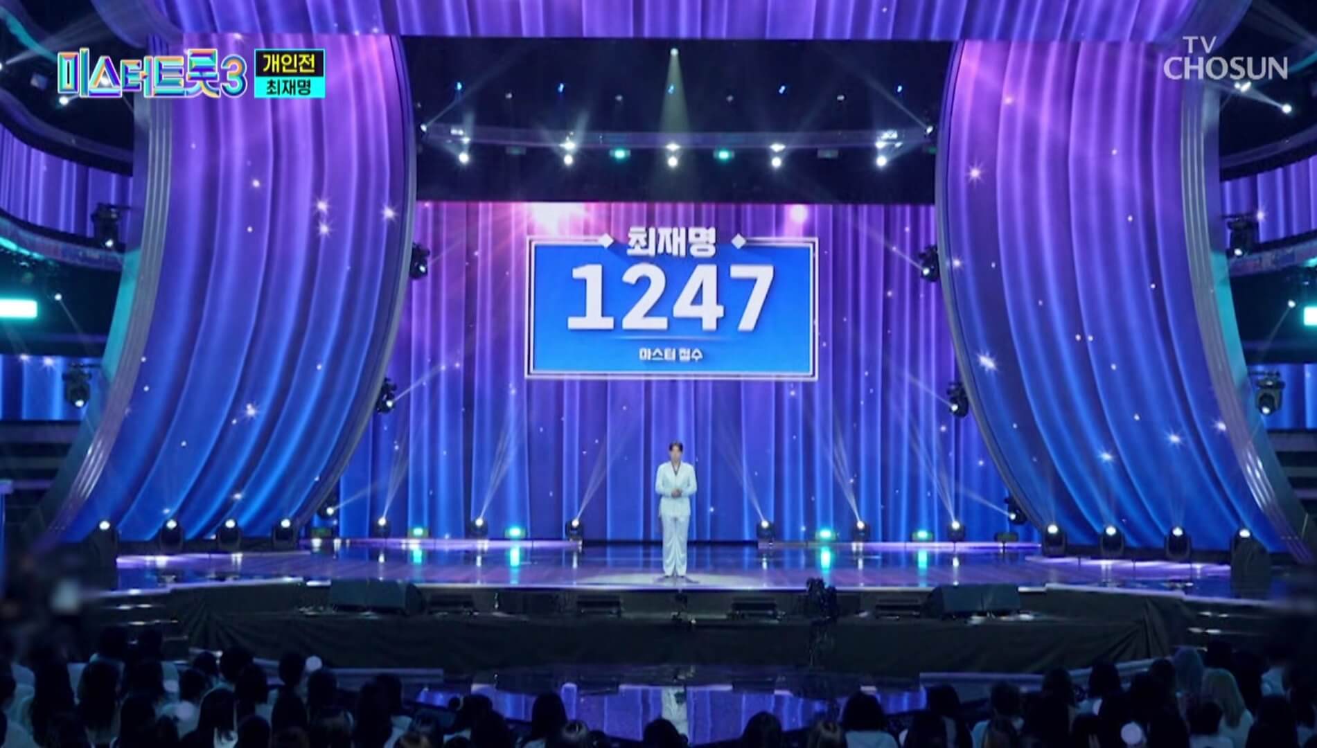첫 번째로 무대에 올라 진성의 울 엄마를 선곡한 최재명은 마스터 점수 1247점, 관객점수 156점 총 1,403점을 받아 최종 순위에서 4위를 차지했습니다.