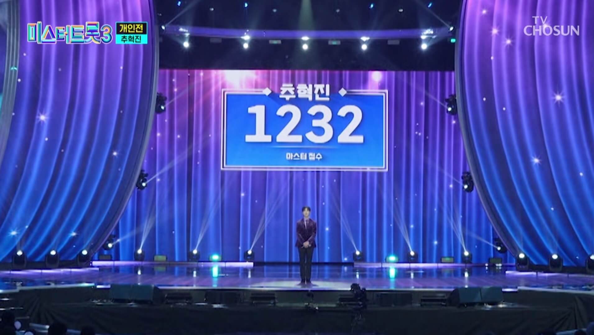 마지막으로 무대에 오른 추혁진은 조항조의 블랙커피를 선곡했고 마스터 점수 1232점, 관객점수 140점 총 1372점으로 5위를 차지했습니다.