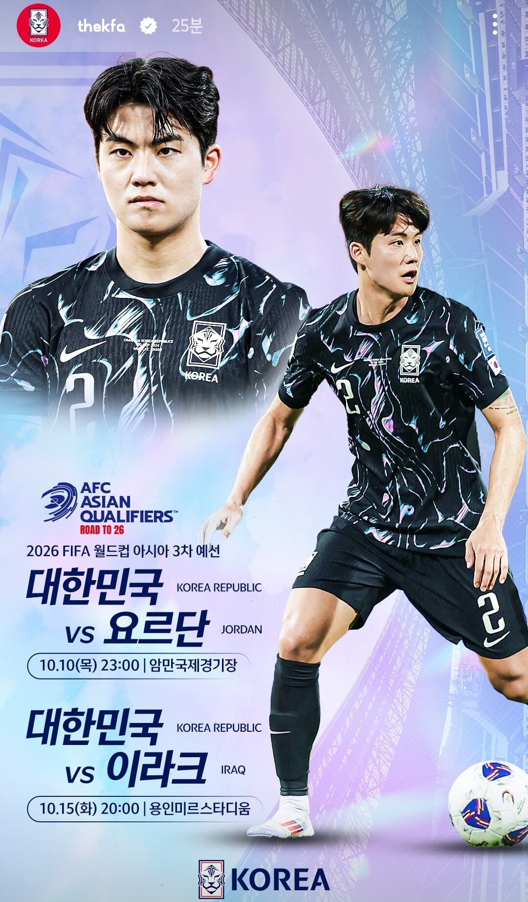 홈에서 치러지는 이라크전(10월 15일) 티켓은 예매 오픈이 시작되었으니 직관하고 싶으신 분들은 위의 포스팅을 참고하시면 됩니다.