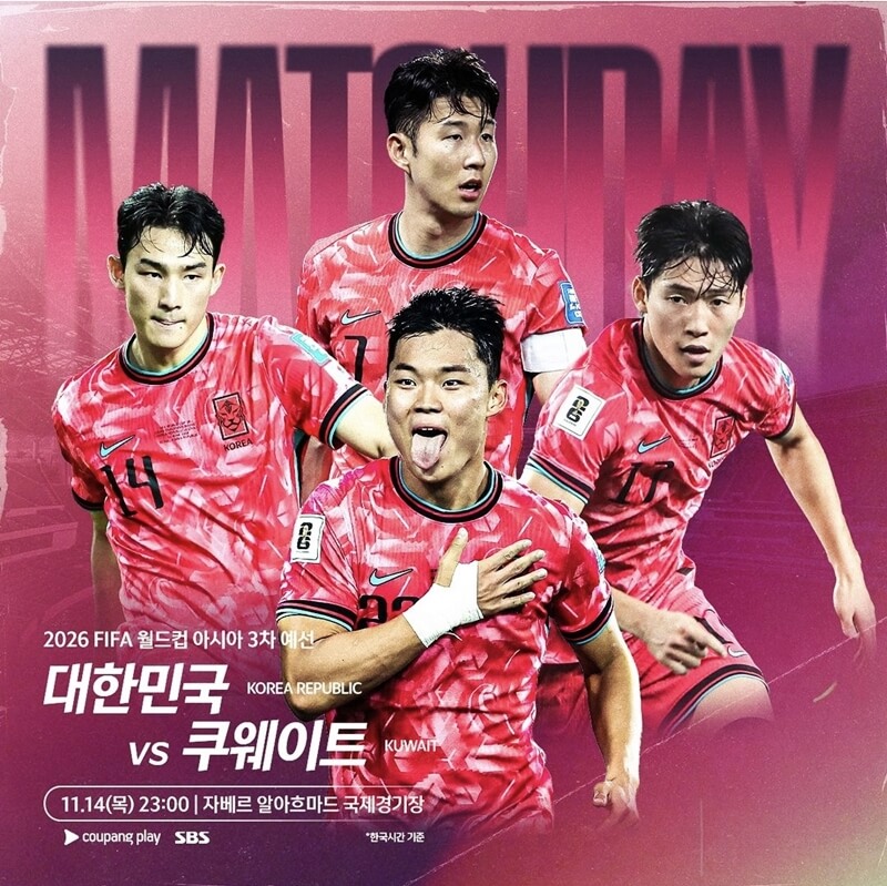 2026 북중미 월드컵 아시아지역 3차 예선경기가 진행중인 현재 한국은 요르단, 이라크, 쿠웨이트, 팔레스타인, 오만과 총 6경기를 남겨두고 있습니다. 그리고 이중 14일에는 쿠웨이트와 5차전 경기를 치르고 19일에는 팔레스타인과 6차전 경기를 치르는데요~ 3차 예선 중계방송은 MBC, KBS2, SBS와 쿠팡 플레이를 통해서 중계되며 공중파 방송인 TV 채널에서는 경기일자에 따라 중계되는 방송사가 달라집니다.