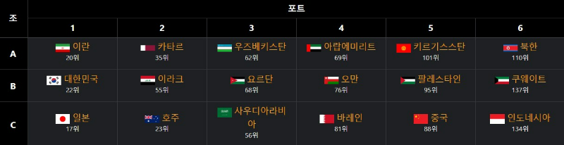 2026 북중미 월드컵을 앞두고 현재 월드컵 아시아 3차 예선이 진행 중입니다. 월드컵 아시아 3차 예선은 18개 팀을 6개 팀씩 3개의 주로 나누어 홈 & 원정 경기를 치르는데요~ 각조 1,2위는 월드컵 본선으로 직행하고 3,4위는 4차 예선을 거쳐야 하는 만큼 현재 월드컵 아시아 3차 예선 조별 순위에 대해 알아보도록 하겠습니다.