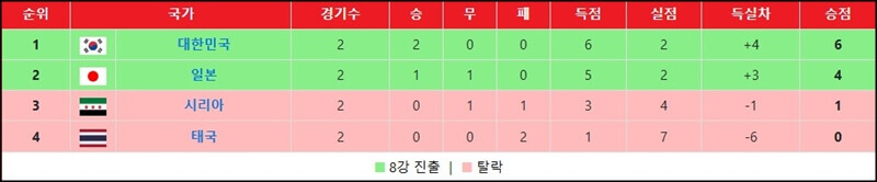 조별리그에서 첫 경기를 치렀던 시리아전에서는 2대 1로 승리했고, 이어진 태국과의 경기에서는 4대 1로 역전승을 거두면서 조별리그 2연승을 기록했습니다. 무엇보다 태국전에서 대표팀 주장인 김태원 선수가 머리로 2골을 넣으면서 팀의 승리를 이끌었습니다.
