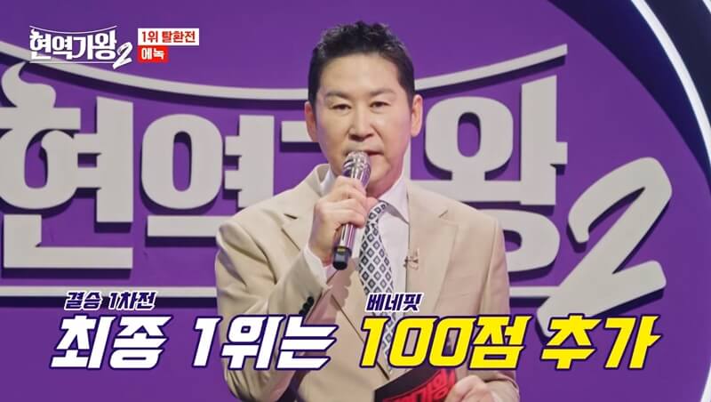 그리고 또 하나, 결승 1라운드 현역가왕2 순위에서 1위를 차지하게되면 베네핏으로 100점을 추가로 받고 2라운드에 진출하게 됩니다.
