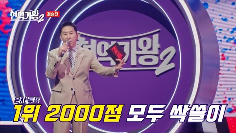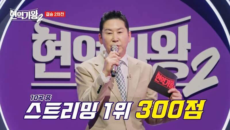 이제 25일(화)에 있을 마지막 무대 현역가왕2 결승 2라운드 에서는 1라운드 점수의 3배가 넘은 3,900점이 걸려있다고 공개했습니다. 여기에 각종 음원사이트에 공개되는 1라운드 신곡 음원의 스트리밍 점수와 실시간 문자투표가 더해지면서 현역가왕2 순위 예측이 더욱 불가해지게 되었습니다.