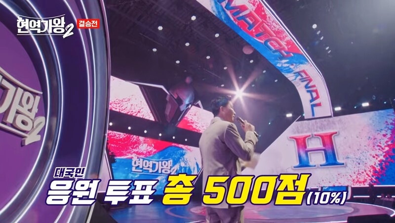 또, 여러분들이 매일 참여하고 있는 대국민 응원 투표 점수는 총 500점이 부여되고, 신곡 음원 점수에서는 총 300점이 부여되기 때문에 내가 응원하는 가수가 TOP7뿐만 아니라 2대 현역가왕이 되었으면 한다면 모든 방법을 총동원해서 다양한 방법으로 투표에 참여해야 합니다.
