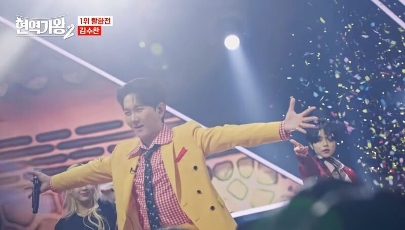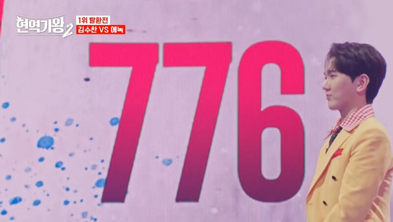 노란 슈트를 입고 등장한 김수찬은 김영호 작곡가의 '흥부가 언제'를 선택하여 끼쟁이 매력과 박 퍼포먼스로 유쾌한 무대를 완성했지만 776점을 받았지만 에녹의 1위를 끌어내리지 못했습니다.