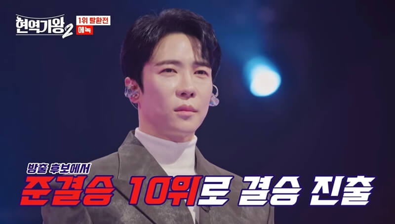다른 이야기를 하기에 앞서 먼저 가장 궁금해하시는 결승 1라운드 무대의 현역가왕2 순위를 알려드리겠습니다. 1위 에녹, 2위 신승태, 3위 강문경, 4위 최수호, 5위 김준수, 6위 진해성, 7위 박서진, 8위 김수찬, 9위 신유, 10위 환희 순으로 이름을 올렸으며