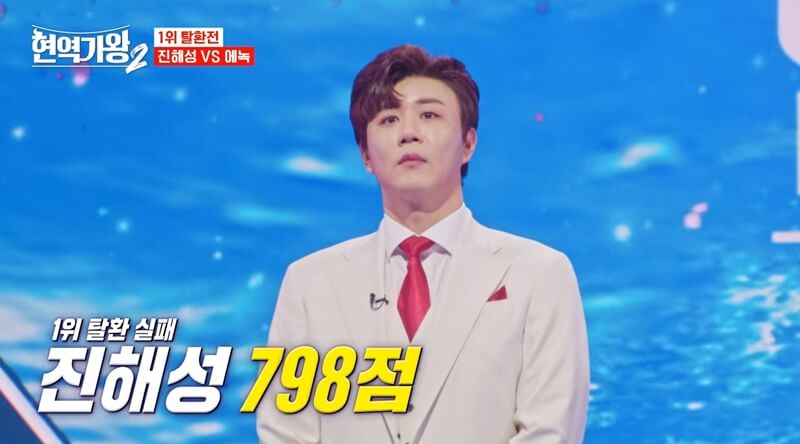윤명선 작곡가의 '불나방'을 선택한 진해성은 남성미와 귀여움 그리고 카리스마와 섹시한 매력을 증폭시키면서 시그니처 웨이브를 탄생시키기도 했는데요~ 완벽한 무대였다는 극찬을 받았음에도 798점을 받으면서 1위 탈환에 실패했습니다.