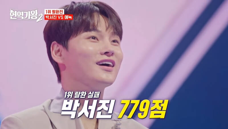 세 번째로 무대에 오른 박서진은 장구를 내려놓고 정의송 작곡가의 '남도 가는 길'을 선택하여 웅장한 느낌의 대곡에 도전하기도 했습니다. 새로운 모습을 보여준 덕에 칭찬을 받았음에도 779점을 받아 역시나 1위 탈환에 실패했습니다.