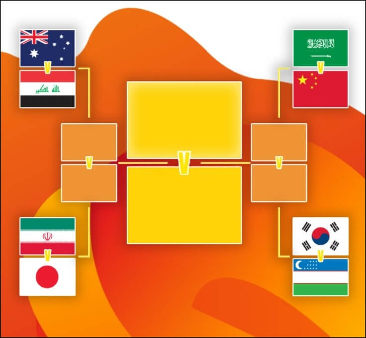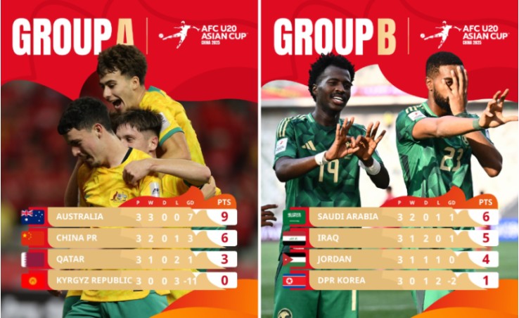 A조 1위는 호주, 2위 중국, 3위 카타르, 4위 키르기스스탄 / B조 1위는 사우디, 2위 이라크, 3위 요르단, 4위 북한으로 호주, 중국, 사우디, 이라크가 8강에 진출했으며