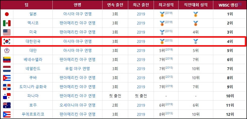 WBSC 프리미어 12 출전국
