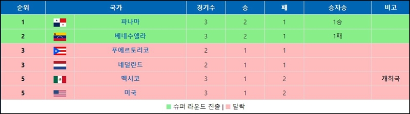 A조에는 멕시코, 미국, 베네수엘라, 네덜란드, 파나마, 푸에르토리코가 속해있으며 11월 9일부터 14일까지 WBSC 프리미어 12 조별리그 경기를 치릅니다.